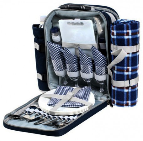 Пікніковий набір на 4 персони з ізотермічним відділом на 15 літрів, ізотермічним чохлом під пляшку та флісовим килимком для пікніка, це все дозволяє виїжджати на пікнік компанії з 4 осіб та брати з собою як теплі так і холодні продукти, і можна бути впевненим, що температура в ізотермічному відділенні такий і залишиться.
