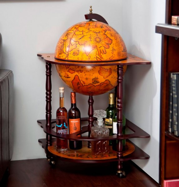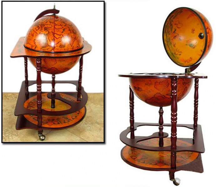 Глобус бар з легкістю впишеться в кут Вашого кабінету та надасть йому більш аристократичного та помпезного вигляду. Прекрасне поєднання дерева та металу робить його лідером продажів, а наявність нижньої підставки робить зберігання напоїв ще більш компактним та зручним.