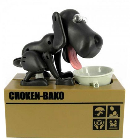 Качественный прикольный сувенир - собачка.Бросьте ей в миску монетку, и собака тут же "съест" ее, да еще и старательно вылижет миску !