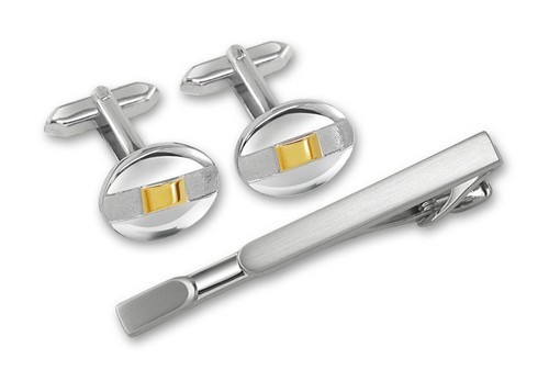 Набор состоит из зажима для галстука и запонок, оригинальная форма качественные материалы сделали набор достойным подарком для джентльмена имеющего в своем гардеробе костюм, набор можно использовать как для очень важных мероприятий так и для повседневного ношения.