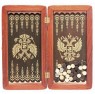 Нарди мають привабливий та презентабельний зовнішній вигляд, що робить їх чудовим подарунком для близької людини, керівника або бізнес-партнера. Матеріал Ясен. Розмір у розкритому вигляді – 290мм на 305 мм. Комплектуються фішками зі шкірою.