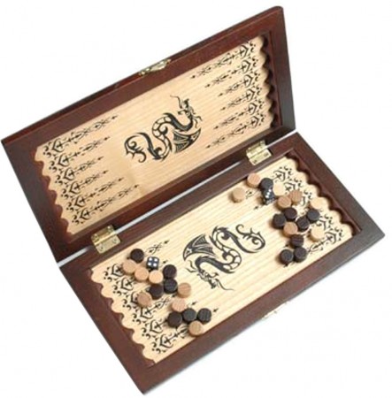 Нарди невеликого розміру для людей, які хочуть завжди розвиватися і для цього готові навіть у дорогу брати компактні нарди, які багато місця не займають, а радість можуть принести Вам і Вашим попутникам. Розміри у розкритому вигляді – 290 на 305 мм.