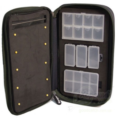 Повідниця зроблена таким чином, що повністю розкривається, зсередини розташовані 10 кнопок для повідців. Три коробки досить місткі, і точно ви знайдете чим їх зайняти.