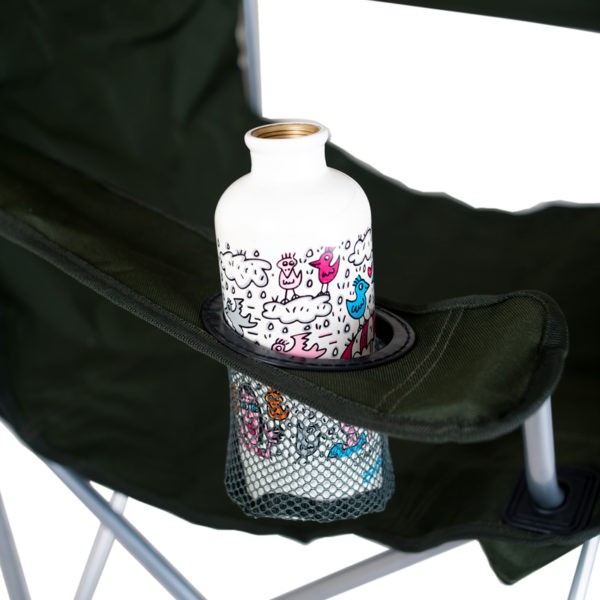 Крісло розкладне дуже зручне та практичне. У складеному вигляді займає дуже мало місця, у підлокітнику гармонійно розташувався підсклянник. На кінці ніжок розташовані спеціальні наконечники, завдяки яким стілець не провалюється навіть під великою вагою.