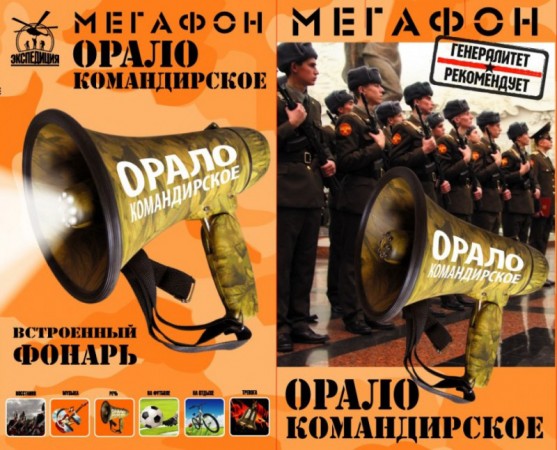 Предлагаем вашему вниманию подарок настоящему командиру. Мегафон камуфляжного цвета с встроенным фонарем довольно оригинальны и веселый подарок. Применять такое устройство можно всюду на ваше усмотрение.