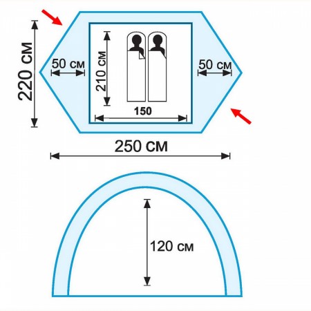 - Двошаровий намет з двома входами