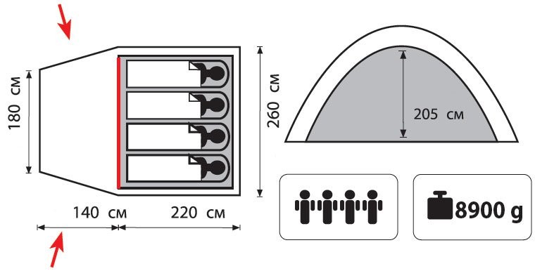 При виготовленні намету були використані високоякісні матеріали та останні наукові розробки у галузі туризму. Зверніть увагу на місткий табмур, у хорошу погоду його можна використовувати як спальне відділення.