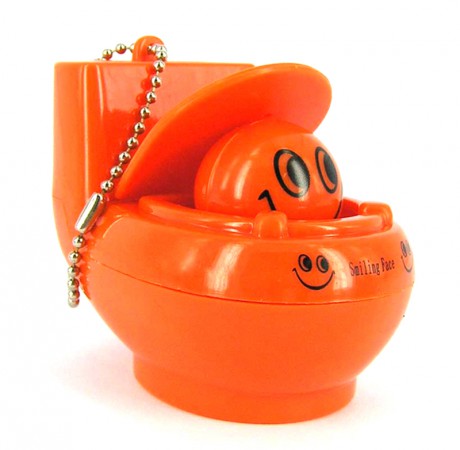 Из унитаза выныривает веселый смайлик. Веселая игрушка с возможностью подвесить на ключи.