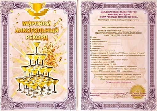 Комментарии к Диплом - гигант мировой рекорд Алкогольный