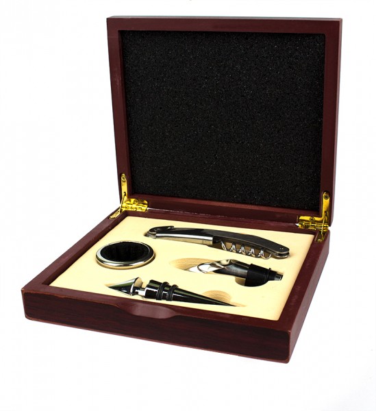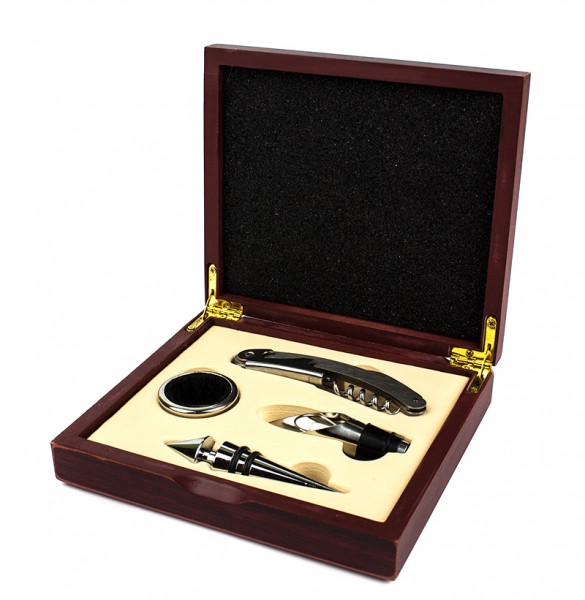 Набор аксессуаров для вина,станет хорошим атрибутом для любой дегустации винных изделий. Такой набор,благодаря своим размерам, можно взять с собой в дорогу,что делает его желанным подарком на любой праздник.