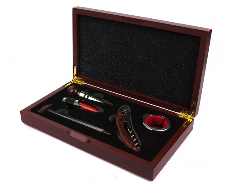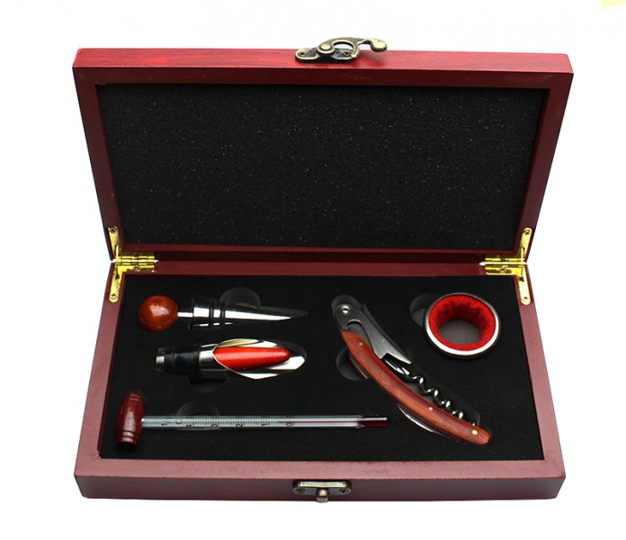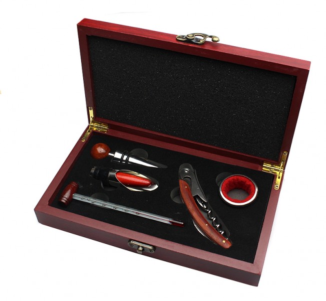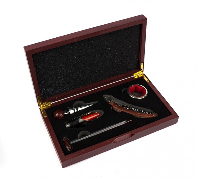 Добротный набор винных аксессуаров, позволит превратить откорковывание вина в целое искусство, а специальный термометр позволит точно определить температуру содержимого внутри бутылки,так что приятный вечер в компании любимого человека гарантирован.