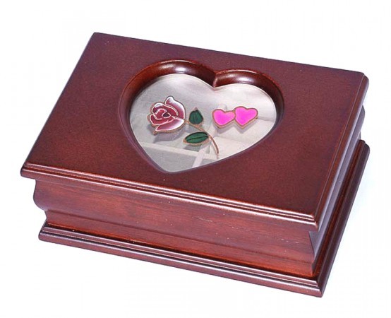 Шкатулка для украшений, изготовлена в темном дереве, будет прекрасным подарком для женщин.