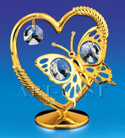Прикольный подарок в виде позолоченного сердечка и бабочки, инкрустированным тремя хрусталиками, заставит растаять сердце даже самой капризной женщины.