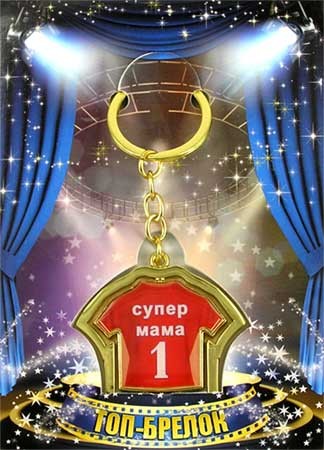 Оригинальный сувенир хорошему человеку? Он - перед Вами! Необычный двухсторонний брелок в виде тенниски с надписью «СУПЕР МАМА» Материал – металл «золото» с качественным напылением. Упакован в яркую двухстороннюю демо упаковку с подвесом.