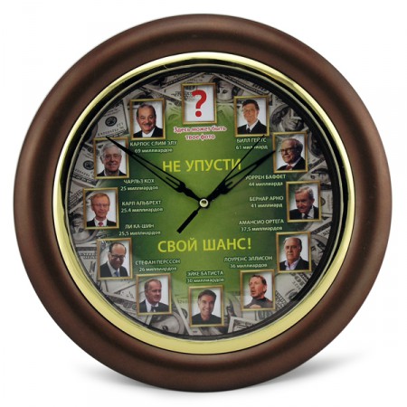 Что объединяет таких людей как Чарльз Кох и Билл Гейтс? А то что они оба находятся на этих часах, что можете сделать собственно и Вы. Интересные часы, фишка которых- идти в обратную сторону, делают их хорошим элементом декора любого кабинета либо Вашей комнаты.