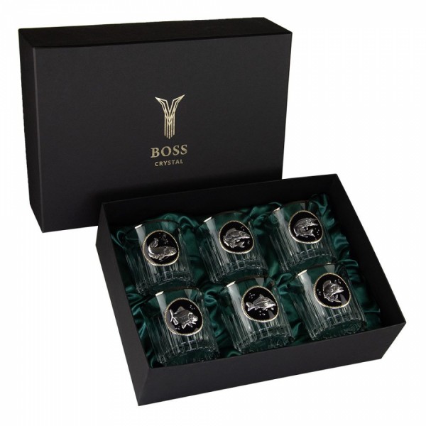 Набор для виски "GOLDFISH" (6 шт. бокалов) хрусталь, золото, серебро, темная эмаль