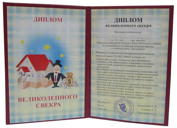 Если Вы хотите поблагодарить и сделать своему свёкру,но не знаете как,то попробуйте подарить этот диплом который скажет все за Вас.