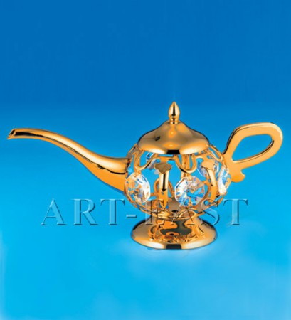 Перед Вами представлена фигурка в виде лампы Алладина,с помощью которой конечно нельзя вызвать Джина,но приятные эмоции и впечатления гарантированы.Ее можно преподнести в качестве подарка любой знакомой представительнице прекрасного пола.Забавная вещица изготовлена из высококачественных материалов,покрыта золотом и украшена сверкающими кристаллами.Благодаря своему качеству изготовления сможет радовать Вас своим нестандартным дизайном долгое время.
