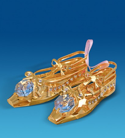 Несравненно великолепная фигурка изображающая пару туфелек.Статуэтка имеет оригинальный дизайн,который порадует каждую представительницу прекрасного пола и вызовет только приятные эмоции.Этот замечательный аксессуар изготовлен из металла,который покрыт настоящим золотом и украшен кристаллами "Swarovski". Благодаря высокому качеству фигурки,Вы сможете украшать ею свою комнату долгое время.