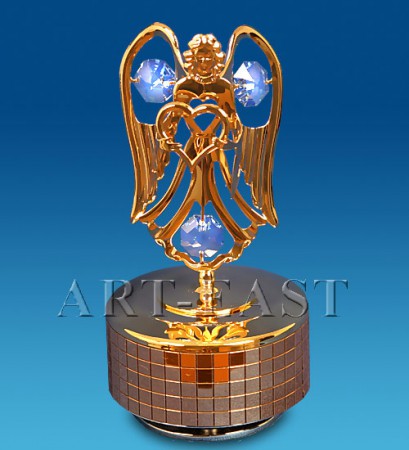 Замечательная фигурка,которая удивительным образом дополнит и украсит интерьер Вашего жилища.Она имеет оригинальный дизайн и выполнена в виде ангела с сердечком.Статуэтка изготовлена из высококачественного металла,полностью покрыта золотом и украшена камнями от "Swarovski". Такая вещица подойдет в качестве отличного подарка по любому поводу.