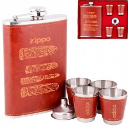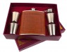 Подарочный набор представляет из себя флягу на 18 унций и 4 стаканчика с лейкой. Хороший подарок на любой повод