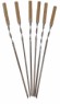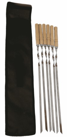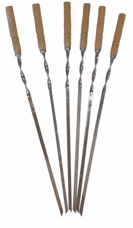 Набор состоит из 6 шампуров с рабочей длинной 45 см, шампура имеют деревянную ручку, что очень удобно во время приготовления, так как та часть к которой часто нужно прикасаться будет деревянной в следствии чего вы точно избежите неприятных последствий в виде ожогов от металлической части шампура. Арт: 0632 Тг.