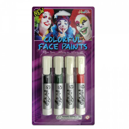Комплект маркеров для нанесения грима состоит из 4 маркеров, что позволяет сделать самый красочный и яркий грим в очень короткие сроки. Маркеры упакованы в очень красочном блистере, благодаря чему их очень удобно хранить.