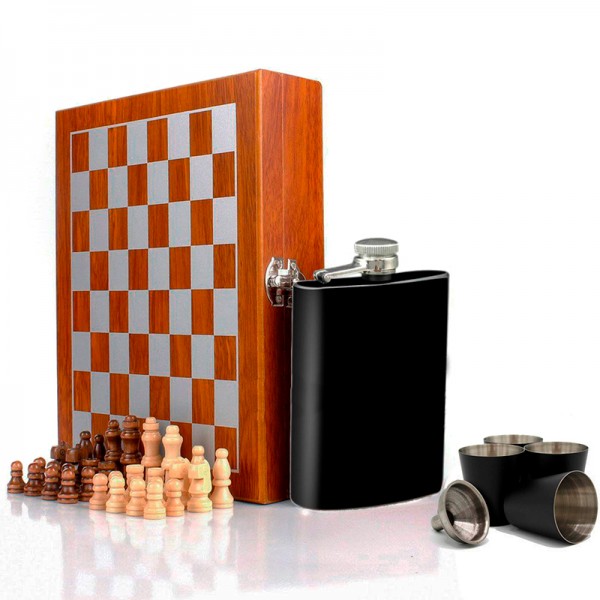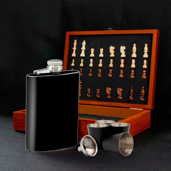 У каждого мужчины есть определенный набор предметов, который он носит при себе, и у каждого он разный. Такой набор подойдет для настоящего джентльмена, который предпочитает комфорт и интеллектуальное время провождение. В набор входит фляга, четыре рюмки и шахматы, что не может не порадовать культурного человека.