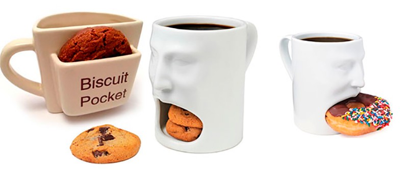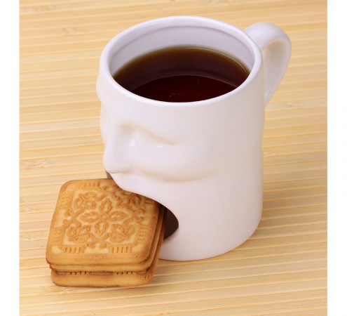 Весьма удобное решение проблемы переноски одновременно еды и питья одновременно в комнату. Чашка обладает специальной нишой для печенья или любого любого небольшого продукта. А прикольное лицо, которое изображено на ней поднимет Вам настроение на весь день.