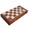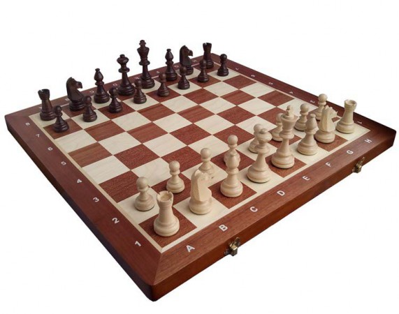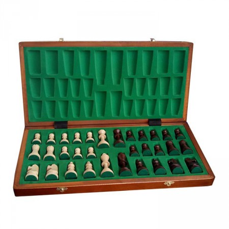 Комплект деревянных фигур большого размера и соответствующей игровой доски. Сдержанный классический дизайн фигур привлекает своей аккуратностью. Качество и строгое следование традициям этого польского производителя шахматной атрибутики завоевало мировую славу. Внутренняя поверхность доски представляет собой «персональные» ячейки для фигур, устланные мягким зеленым сукном. Добротный набор для игры, неотъемлемый атрибут профессиональных игроков, что не мешает ему занять почетное место и среди стильных домашних интеллектуальных развлечений.