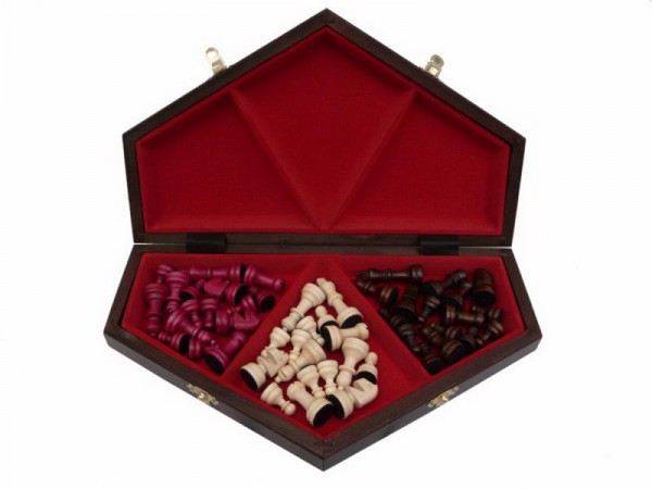 Шахматы на троих, звучит загадочно, но играть в эту игру довольно интересно. Нужно отметить что доска и шахматные фигуры сделаны из дерева польскими мастерами и соответствуют европейским стандартам. С даным комплектом можно хорошо провести время в компании, также шахматы на троих станут отличным подарком.