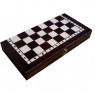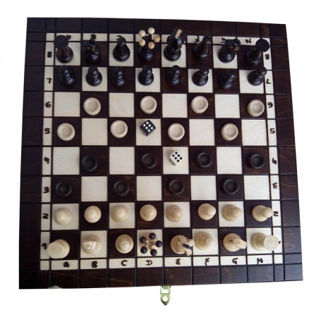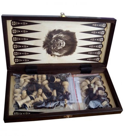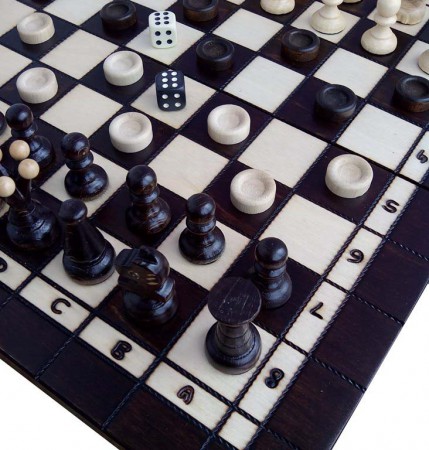 Превосходный вариант для поклонников тактических логических игр от известного польского брэнда. Комплект, состоящий из трех игр, станет ценным приобретением, как для домашней игротеки, так и в качестве дорожного развлечения. С внешней стороны раскладной доски, в которой хранят фигуры и фишки, нанесено шахматное игровое поле, а с внутренней – поле для нард. Также на внешней стороне используется техника выжигания. Небольшие шахматные фигуры выполнены из качественного дерева, в классическом стиле, с довольно оригинальным дизайном.