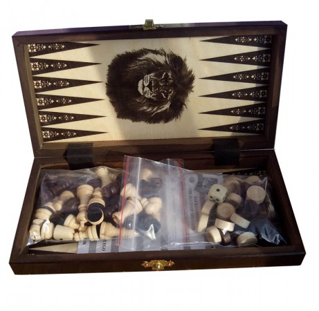 Компактный набор из трех игр самых популярных настольных игр идеально подойдет для людей, которые часто путешествуют или ездят в командировки. Такой набор всегда пригодиться в дороге, чтоб скоротать время и провести его с удовольствием и пользой. Деревянная доска при своих небольших размерах имеет привлекательный вид, благодаря выжженным линиям, на основе которых сделана разметка доски, внутренняя часть доски украшена изображениями льва на каждой части доски. Маленькие, но в тоже время аккуратно выполненные фигуры, изготавливаются из натурального дерева. Данный набор станет отличным приобретением, а также сослужит роль хорошего подарка, это уже Вам решать.