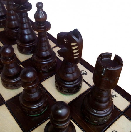 Вы хотите сделать человеку приятный и незабываемый подарок? Тогда покупайте данный комплект шахмат, которые сделают проведения досуга гораздо приятнее и интереснее. Доска изготовлена из натуральной древесины, оснащена металлическими замками. А линии на доске не просто нарисованы, они выжжены. Внутри доска выстелена бархатной тканью, чтобы не портились шахматы сложенные туда. А необычный дизайн шахмат прекрасно сочетается с таким её оформлением . Резьба на шахматах только украшает и добавляет изысканности. Поэтому такой подарок будет действительно приятным и незабываемым.