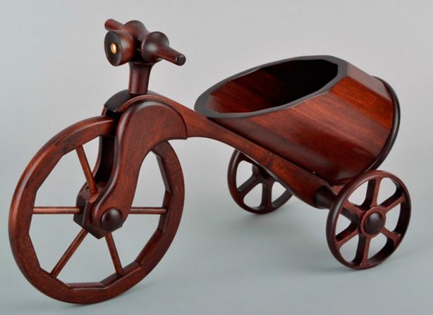 Яркий стильный сувенир для настоящих ценителей. Среди достоинств данной модели: полностью весь цикл ручного производства, использование натуральных и экологически чистых материалов и самое важное- это честное имя мастера занимающегося производством данных аксессуаров. Приобретая мини бар велосипед Вы можете быть уверены в том, что такой подарок придется по вкусу человеку, которому, будет вручен такой подарок. Емкости, которые помещаются в минибар "Велосипед": шампанское (0,75 л), вино (0,75 л), коньяк, виски, водка и т.д. (1 л, 0,7 л, 0,5 л). Размеры изделия из дерева "Велосипед": H - 250 mm, D - 380 mm