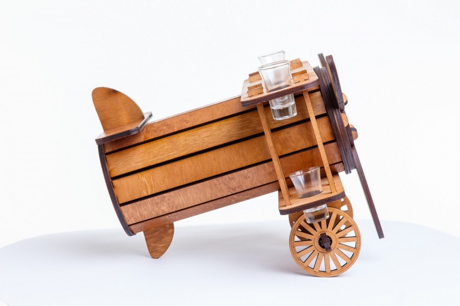 Самолет наполовину укомплектован! Эта фраза подразумевает то, что до полного доукомплектовании достаточно поместить в корпус самолета Ваш любимый спиртной напиток ли же любимый напиток человека которому такой самолет будут преподносить в качестве подарка.
