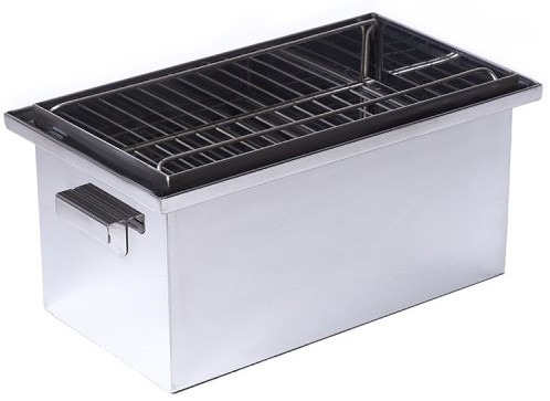 Коптильня отлично становится на 2 конфорки газовой плиты. В данную коптильню с легкостью помещается две курицы или 4 кг куриных крыльев. Коптилка выполнена из нержавеющей стали, что гарантирует еще более длительный срок эксплуатации по сравнению с обычной. Решетки в данной коптильне изготовлены из пищевой нержавеющей проволоки диаметром от 3мм до 5мм. Благодаря толщине и прочности их можно использовать как решетки барбекю на мангале. Продукты горячего копчения собственного приготовления получаются красивыми внешне и, главное, вкусными!