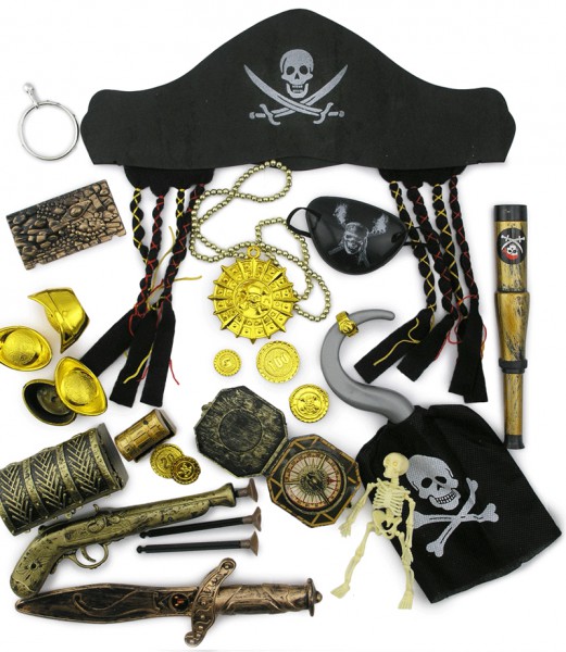 Суперский набор,в нем есть все что нужно для образа пирата на карнавальной вечеринке. В наборе 25 различных предметов которые явном будут вам полезны.