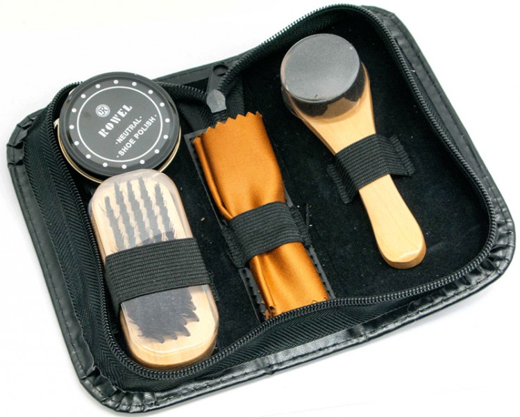 Хороший,простой вариант набора для ухаживаниям за обувью,в комплекте входит: