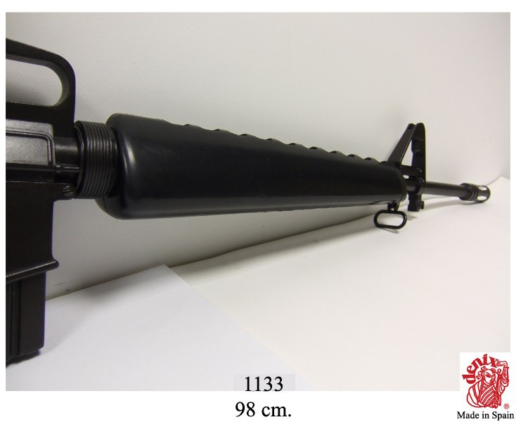 Испанская компания Denix, конечно, не могла обойти вниманием легендарный автомат и в мельчайших деталях воссоздала его, использовав качественный пластик и цинко-алюминиевый сплав замак. Предлагаем вам купить автомат M16A1 по выгодной цене.