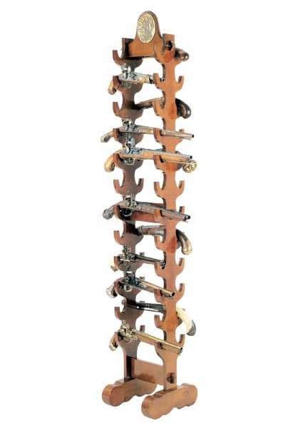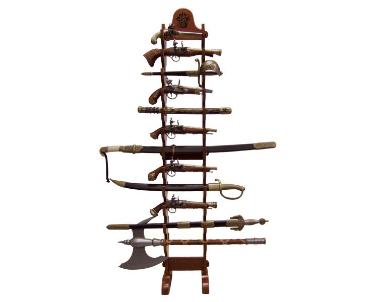 Стенд напольный из дерева для демонстрации пистолей и мечей на 12 единиц. Он произведен испанской компанией Denix