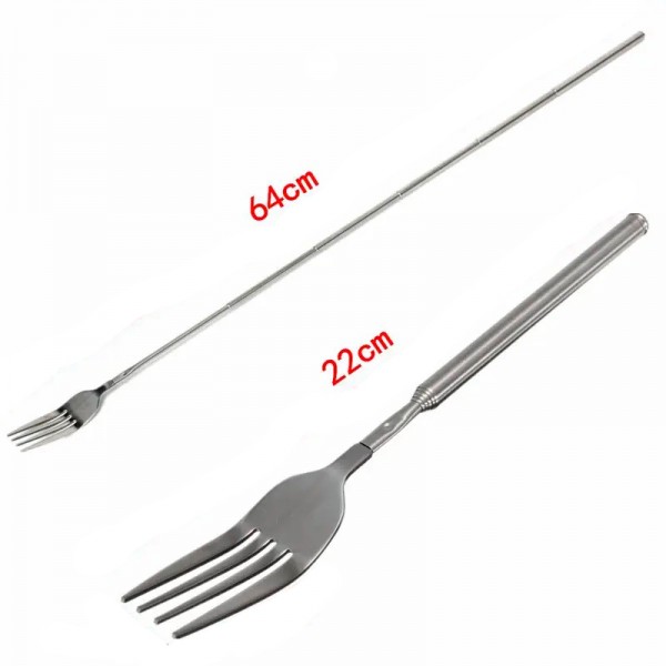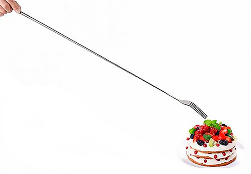 Это действительно прикольный подарок! Ручка этой вилки удлиняется как антенна в 3 раза, что дает возможность дотянуться до блюда соседа без помощи его самого. Применив такую вилку во время компанейского застолья, Вы непременно вызовете положительные эмоции у окружающих и станете "объектом внимания" до конца застолья. С этим удивительным столовым прибором для Вас откроются новые горизонты! Имея длину 225 мм, эта телескопическая вилка в разобранном виде достигает 615 мм, не только помогая Вам в ежедневном приеме пищи, но и радуя множеством других возможностей. Рассмешите друзей своими новыми способностями! С помощью этой вилки Вы с легкостью дотянитесь до лакомства на другом конце стола, сможете при необходимости «стянуть» еду с тарелки соседа или, не нагибаясь, поднять упавший на пол кусочек. Вы также оцените преимущества чудо-прибора, когда перед Вами окажется котелок дымящегося фондю.