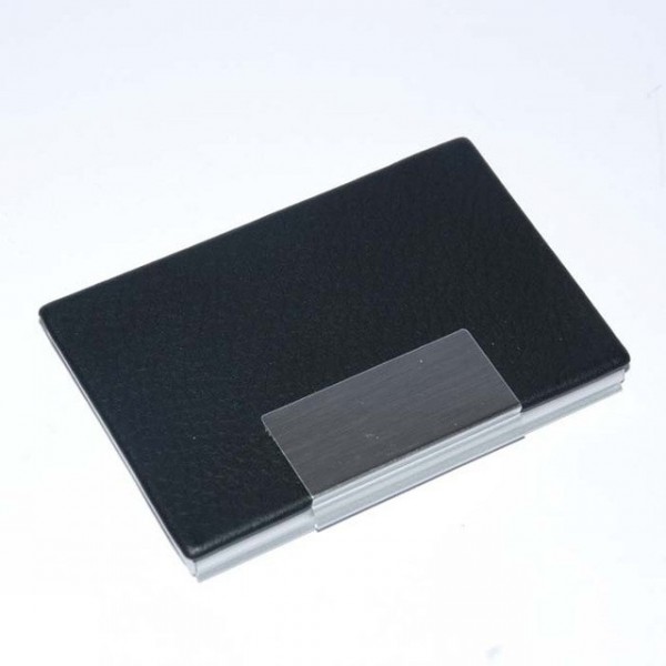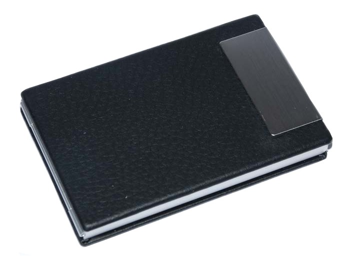 Представленная здесь модель визитницы 87544 от Elite, выполнена из прочного алюминия с покрытием из высококачественной искусственной кожи. Аксессуар плотно закрывается на фиксатор и сможет хранить достаточное количество визиток и дисконтных карт.