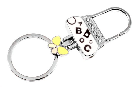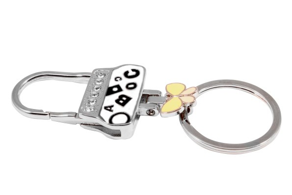Оригинальный брелок - сумочка Jinli, с желтой бабочкой и стразами, с кольцом для ключей на карабине.