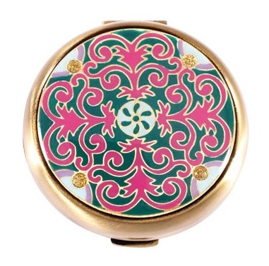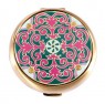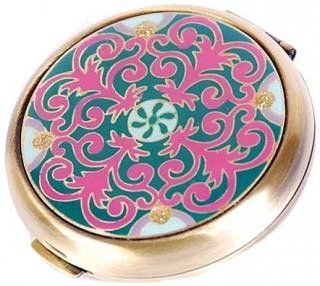 Под корпусом зеркала, покрытым цветной эмалью, расположены два зеркальца - обычное и увеличивающее. В комплект входит специальный чехол из искусственной замши для хранения зеркала. Цвет: золотой. Отделка: эмаль, стразы.