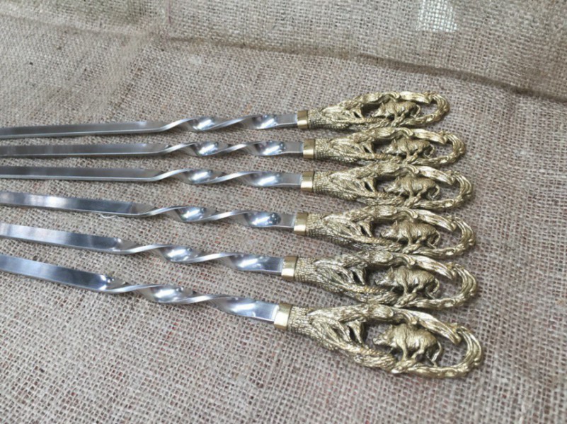 Шампура: 6 штук, твердая пищевая нержавеющая сталь толщиной 3мм
