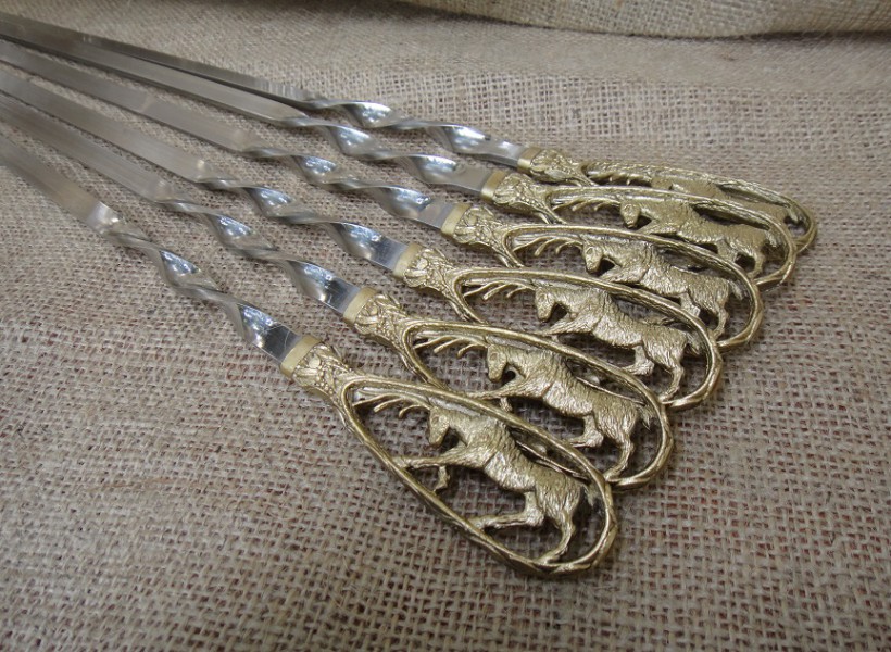 Шампура: 6 штук, твердая пищевая нержавеющая сталь толщиной 3мм