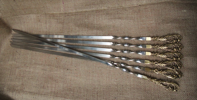 Шампура: 6 штук, твердая пищевая нержавеющая сталь толщиной 3мм.