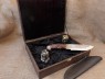 2. Нож ручной работы: рукоять – дерево кленовый кап; материал литья – бронза; лезвие нержавеющая сталь марки 40х13; размер клинка-150*38*2.4. Ножни – натуральная кожа.