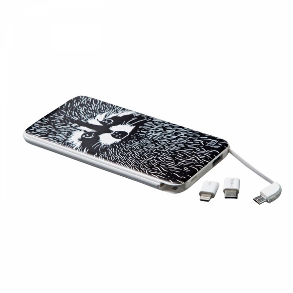 Павербанк укомплектован адаптерами: micro USB, USB Type-C, Lightning (iPhoneiPad), что позволит зарядить не только смартфон, а и другую носимую электронику.